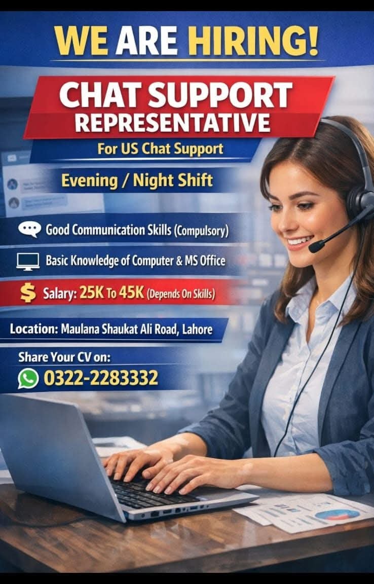 Chat Support Jobs, Customer Support, Call Center Jobs, Lahore Hiring, Night Shift Jobs, MS Office Jobs